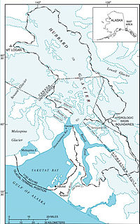 Hubbard Glacier is a tidewater glacier in the U.S. state of Alaska and the Yukon Territory of Canada. From its source in the Yukon, the glacier stretches 122 km (76 mi) to the sea at Yakutat Bay and Disenchantment Bay. It is the longest tidewater glacier in Alaska, with an open calving face over ten kilometers (6 mi) wide.