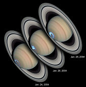 Hubble's STIS UV and ACS visible light are combined to reveal Saturn's southern aurora.