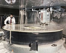 Grinding of Hubble's primary mirror at Perkin-Elmer, March 1979.