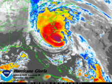 Hurricane Gloria was a powerful Cape Verde-type hurricane that formed during the 1985 Atlantic hurricane season and prowled the Atlantic Ocean from September 16 to September 28. Gloria reached Category 4 status on the Saffir-Simpson Hurricane Scale near the Bahamas, but weakened significantly by the time it made landfall on North Carolina's Outer Banks. Gloria closely followed the Mid-Atlantic coastline and made a second landfall on Long Island, and, after crossing the Long Island Sound, it made a third landfall in Connecticut.