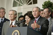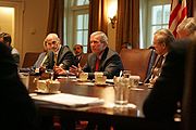 Michael Chertoff, Secretary of the Department of Homeland Security, decided to take over the federal, state, and local operations officially on August 30, 2005, citing the National Response Plan. Early in September, Congress authorized a total of $62.3 billion in aid for victims. Additionally, President Bush enlisted the help of former presidents Bill Clinton and George H.W. Bush to raise additional voluntary contributions, much as they did after the 2004 Indian Ocean earthquake and tsunami. American flags were also ordered to be half-staff from September 2, 2005 to September 20, 2005 in honour of the victims.