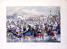 Ice skating is moving on ice by using ice skates. It can be done for a variety of reasons, including health benefits, leisure, traveling, and various sports. Ice skating occurs both on specially prepared indoor and outdoor tracks, as well as on naturally occurring bodies of frozen water, such as lakes and rivers.