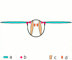 The thoracic segments have one ganglion on each side, which are connected into a pair, one pair per segment. This arrangement is also seen in the abdomen but only in the first eight segments. Many species of insects have reduced numbers of ganglia due to fusion or reduction. Some cockroaches have just six ganglia in the abdomen, whereas the wasp Vespa crabro has only two in the thorax and three in the abdomen. Some insects, like the house fly Musca domestica, have all the body ganglia fused into a single large thoracic ganglion.