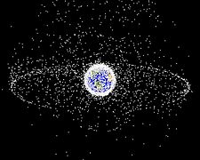 Radar-trackable objects including debris, note distinct ring of Geostationary satellites