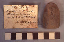 Prehistoric polished stone celt from Boundiali in northern Ivory Coast. Photo taken at the IFAN Museum of African Arts in Dakar, Senegal.