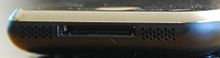 On the bottom of the iPhone there is a speaker to the left of the dock connector and a microphone to the right. There is an additional loudspeaker above the screen that serves as an earpiece during phone calls. The iPhone 4 includes an additional microphone at the top of the unit for noise cancellation, and switches the placement of the microphone and speaker on the base on the unit—the speaker is on the right. Volume controls are located on the left side of all iPhone models and as a slider in the iPod application.
