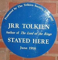 Another two plaques marking buildings associated with Tolkien are found in Oxford and Harrogate. The Harrogate plaque commemorates a residence where Tolkien convalesced from trench fever in 1917, while the Oxford plaque marks his home from 1953–1968 at 76 Sandfield Road, Headington.