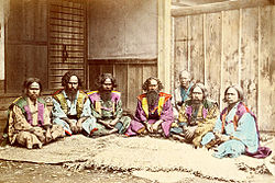 A Paleolithic culture around 30,000 BC constitutes the first known habitation of the Japanese archipelago. This was followed from around 14,000 BC (the start of the Jōmon period) by a Mesolithic to Neolithic semi-sedentary hunter-gatherer culture, who include ancestors of both the contemporary Ainu people and Yamato people, characterized by pit dwelling and rudimentary agriculture. Decorated clay vessels from this period are some of the oldest surviving examples of pottery in the world. Around 300 BC, the Yayoi people began to enter the Japanese islands, intermingling with the Jōmon. The Yayoi period, starting around 500 BC, saw the introduction of practices like wet-rice farming, a new style of pottery, and metallurgy, introduced from China and Korea.
