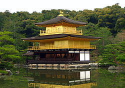 Kinkaku-ji or 'The Temple of the Golden Pavilion' in Kyoto, Special Historic Site, Special Place of Scenic Beauty, and UNESCO World Heritage Site; its torching by a monk in 1950 is the subject of a novel by Mishima.