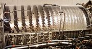Another turbine starter system is almost exactly like a little engine. Again the turbine is connected to the engine via gears. However, the turbine is turned by burning gases - usually the fuel is isopropyl nitrate stored in a tank and sprayed into a combustion chamber. Again, it is ignited with a spark plug. Everything is electrically controlled, such as speed etc.
