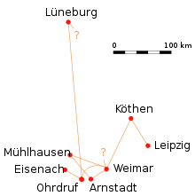 | “ | On November 6, [1717], the quondam concertmaster and organist Bach was confined to the County Judge's place of detention for too stubbornly forcing the issue of his dismissal and finally on December 2 was freed from arrest with notice of his unfavourable discharge. | ” |
