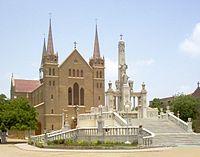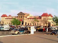Historic places and buildings: Chowkandi graveyard is the most historic place in Karachi, famous for hundred-year old tombs. Historic buildings in the city were constructed in British era like Karachi Port Trust, Sindh High Court. Hindu Gymkhana, KMC Head Office, Ghulam Husain Khalikdina Hall, Frere Hall, Empress Market, Jehangir Kothari Parade, St Patrick's Church, Mohatta Palace and Karachi Cantonment Railway Station buildings.
