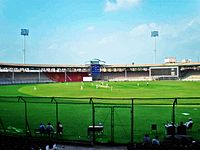 The National Stadium is the city's only world-class cricket stadium, and is the second largest cricket stadium in Pakistan, after the Gaddafi Stadium in Lahore. The inaugural first-class match at the National Stadium was played between Pakistan and India on 26 February 1955 and since then Pakistani national cricket team has won 20 of the 41 Test matches played at the National Stadium. The first One Day International at the National Stadium was against the West Indies on 21 November 1980, with the match going to the last ball.