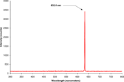 The helium-neon laser (HeNe) emits at a variety of wavelengths and units operating at 633 nm are very common in education because of its low cost.