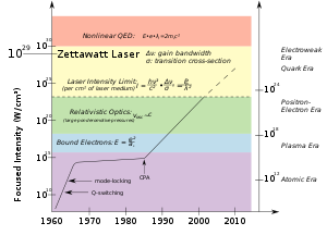 - 1.3 PW (1.3×1015 W) – world's most powerful laser as of 1998, located at the Lawrence Livermore Laboratory