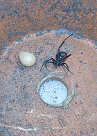 When a male is mature, he spins a sperm web, deposits semen on it, and charges his palpi with the sperm. Black widow spiders reproduce sexually when the male inserts his palpus into the female's spermathecal openings. The female deposits her eggs in a globular silken container in which they remain camouflaged and guarded. A female black widow spider can produce four to nine egg sacs in one summer, each containing about 100-400 eggs. Usually, eggs incubate for twenty to thirty days. Rarely do more than a hundred survive through this process. On average, thirty will survive through the first molting, because of cannibalism, lack of food, or lack of proper shelter. It takes two to four months for black widow spiders to mature enough to breed, however full maturation typically takes six to nine months. The females can live for up to five years, while a male's lifespan is much shorter. Contrary to popular belief, the female only rarely eats the male after mating, and L. mactans is the only black widow species for which this form of sexual cannibalism has been observed in the wild. Lifespans depend upon environment, with shelter being the greatest determining factor and food the second greatest. Males that escape being consumed by the females can go on to fertilize other females. This is a general misconception, as the name seems to suggest that the males are invariably consumed after mating.