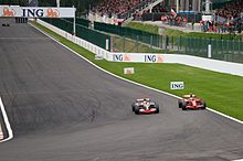 Hamilton was penalised at the 2008 Belgian Grand Prix for passing Kimi Räikkönen after cutting the previous corner. The stewards judged that he gained an illegal advantage, and the penalty dropped him from first to third position.
