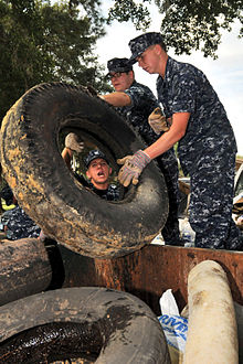Volunteers, sometimes alone or coordinated through organisations will pick up litter and dispose of it. Clean up events may be organised where participants will sometimes comb an area in a line to ensure that no litter is missed. In North America, Adopt a Highway programs are popular, where companies and organizations commit to cleaning stretches of road. Increasingly, geocaching is used (see Cache In Trash Out). In Kiwayu, a Kenyan island, some of the collected litter (flip-flops) is used for making art, which is then sold (see FlipFlop Recycling Company).