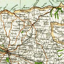 | “ | The line at first keeps up the winding course of the Yeo with Pilton church tower on the left, and that of Goodleigh presently, on the right, marking a side valley, for which the train stops at Snapper Halt, whence, by Goodleigh one might have an alluring ramble back to Barnstaple. Chelfham (pron. Chellam) is reached by a fine viaduct over the tributary stream, where 2 miles (3.2 km) east stands Stoke Rivers, through which the above round might be extended. The line has now left the Yeo, mounting eastward up the Bratton Valley to Bratton Fleming Station near the lofty village of Bratton Fleming. The next station is Blackmoor (900 ft), lying under the tumuli of Kentisbury Down to the left, whence one might descend on foot to Lynton and Lynmouth (7 miles) or Ilfracombe (10 miles) from the crossroads at Blackmoor Gate. The railway has next to wind around the deep hollow in which lies Parracombe (Fox and Geese Inn) [ sic], where, near the halt platform, can be seen the tower of the old church, another of those said to have been built in expiation of Thomas à Becket's murder. Hence flows the Heddon water, which one might follow down its beautiful course by the Hunter's Inn. The cyclist will find a way diverging from the main road a little beyond Parracombe. At the last station, Wooda Bay*, two miles (3 km) behind this place and its neighbour Trentishoe, the line has reached a highest point of about 1,000 feet (300 m). Beyond this, it crooks down the valley of the West Lyn (best glimpses on right hand), past Caffyn's Down Halt (for the golf links), ending some half-mile behind Lynton, and over a mile by the zig-zag road from Lynmouth. The road (17 miles) keeps pretty much the course of the railway, except in the central stage, where it strikes a mile further north to Loxhore, before leaving the valley of the Yeo, then rejoins the railway at Blackmoor. |
