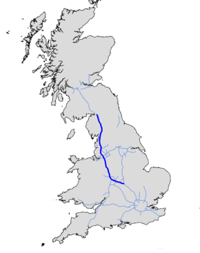 M1 motorway J2 → M69 motorway J3a → M6 Toll J4 → M42 motorway J4a → M42 motorway J6 → A38(M) motorway M5 motorway J10a → M54 motorway J11a → M6 Toll J20 → M56 motorway J21a → M62 motorway J26 → M58 motorway J29 → M65 motorway J30 → M61 motorway J32 → M55 motorway J35 → A601(M) motorway J45 → A74(M) motorway  |