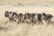 Wildebeest, topi, zebra, and Thomson's gazelle migrate into and occupy the Mara reserve, from the Serengeti plains to the south and Loita plains in the pastoral ranches to the north-east, from July to October or later. Herds of all three species are also resident in the reserve.