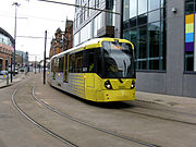 Manchester became the first city in the UK to acquire a modern light rail tram system when the Manchester Metrolink opened in 1992. The present system mostly runs on former commuter rail lines converted for light rail use, and crosses the city centre via on-street tram lines. The 23 mi (37 km)-network consists of three lines with 37 stations (including five on-street tram stops in the centre). An expansion programme is underway which will create 4 new lines to add to the current 3 and will be at least 99 stops, 62 more than in 2010. Upon completion Manchester will have the largest tram system in the UK.
