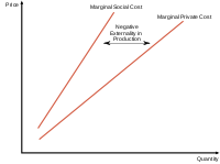 Much of the time, private and social costs do not diverge from one another, but at times social costs may be either greater or less than private costs. When marginal social costs of production are greater than that of the private cost function, we see the occurrence of a negative externality of production. Productive processes that result in pollution are a textbook example of production that creates negative externalities.