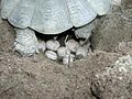 According to the 2005 DNA sequence data, these species do not seem to hybridize to a notable extent in the wild, though they are obviously very close relatives, and as evidenced bby morphology some allele flow still occurs, but slowly. The Egyptian tortoise appears to represent a lineage that diverged from the same ancestral stock southwards into northeastern Africa around the same time as the marginated tortoise's ancestors diverged in Greece. These two are actually more similar to each other than to T. graeca regarding DNA sequence data, but considering biogeography, this is either due to (rather unlikely) dispersal across the Mediterranean, or the supposed " clade" is invalid and the similarity due to convergent evolution.