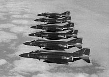 The McDonnell Douglas F-4 Phantom II is a tandem, two-seat, twin-engine, all-weather, long-range supersonic jet interceptor fighter/fighter-bomber originally developed for the United States Navy by McDonnell Aircraft. It first entered service in 1960 with the U.S. Navy. Proving highly adaptable, it was also adopted by the U.S. Marine Corps and the U.S. Air Force, and by the mid-1960s had become a major part of their respective air wings.