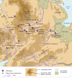 Once a kingdom in its own right, disputed with Northumbria in the 7th century before finally coming under Mercian control (approx. N. Lincs.).