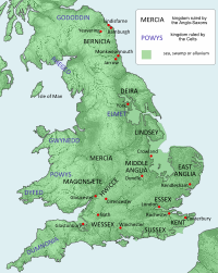 Mercia's neighbours included Northumbria, Powys and the kingdoms of southern Wales, Wessex, Sussex, Essex and East Anglia.