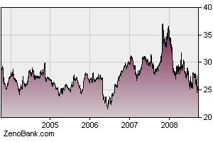 Despite the company's ninth split on February 2, 2003 and subsequent increases in dividend payouts, the price of Microsoft's stock largely remained steady for the next several years, with a rise in stock price around the release of Windows Vista and a fall during the economic crisis of 2008.