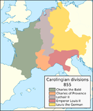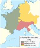A three-year civil war followed his death. By the Treaty of Verdun (843), a kingdom between the Rhine and Rhone rivers was created for Lothair to go with his lands in Italy, and his imperial title was recognized. Louis the German was in control of Bavaria and the eastern lands in modern-day Germany. Charles the Bald received the western Frankish lands, comprising most of modern-day France. Charlemagne's grandsons and great-grandsons divided their kingdoms between their descendants, eventually causing all internal cohesion to be lost. In 987, the Carolingian dynasty was replaced the western lands with the crowning of Hugh Capet as king. In the eastern lands the dynasty had died out earlier, in 911, with the death of Louis the Child, and the selection of the unrelated Conrad I as king.