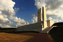 In the later stages of the war, the Canadian Corps were among the most effective and respected of the military formations on the Western Front. For a nation of eight million people, Canada's war effort was widely regarded as remarkable. A total of 619,636 men and women served in the Canadian forces in the First World War, and of these 59,544 were killed and another 154,361 were wounded. Canadian sacrifices are commemorated at eight memorials in France and Belgium. Two of the eight are unique in design: the giant white Vimy Memorial and the distinctive Brooding Soldier at the Saint Julien Memorial. The other six follow a standard pattern of granite monuments surrounded by a circular path: the Hill 62 Memorial and Passchendaele Memorial in Belgium, and the Bourlon Wood Memorial, Courcelette Memorial, Dury Memorial, and Le Quesnel Memorial in France. There are also separate war memorials to commemorate the actions of the soldiers of Newfoundland (which did not join Confederation until 1949) in the Great War. The largest are the Beaumont-Hamel Newfoundland Memorial and the National War Memorial in St. John's.