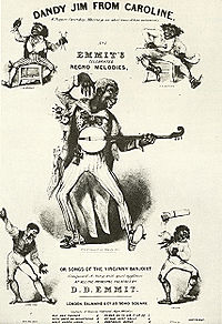 Thomas "Daddy" Rice introduced the earliest slave archetype with his song " Jump Jim Crow" and its accompanying dance. He claimed to have learned the number by watching an old, limping black stable hand dancing and singing, "Wheel about and turn about and do jus' so/Eb'ry time I wheel about I jump Jim Crow." Other early minstrel performers quickly adopted Rice's character.