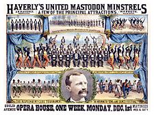 The minstrel show, or minstrelsy, was an American entertainment consisting of comic skits, variety acts, dancing, and music, performed by white people in blackface or, especially after the American Civil War, African Americans in blackface.