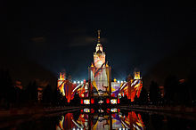 There are 1696 high schools in Moscow, as well as 91 colleges. Besides these, there are 222 institutions of higher education, including 60 state universities and the Lomonosov Moscow State University, which was founded in 1755. The main university building located in Vorobyovy Gory ( Sparrow Hills) is 240 metres (790 ft) tall and when completed, was the tallest building on the continent. The university has over 30,000 undergraduate and 7,000 postgraduate students, who have a choice of twenty-nine faculties and 450 departments for study. Additionally, approximately 10,000 high school students take courses at the university, while over two thousand researchers work. The Moscow State University library contains over nine million books, making it one of the largest libraries in all of Russia. Its acclaim throughout the international academic community has meant that over 11,000 international students have graduated from the university, with many coming to Moscow to learn the Russian language.