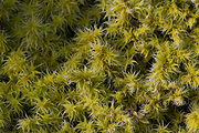 Mosses are small, soft plants that are typically 1–10 cm (0.4-4 in) tall, though some species are much larger. They commonly grow close together in clumps or mats in damp or shady locations. They do not have flowers or seeds, and their simple leaves cover the thin wiry stems. At certain times mosses produce spore capsules which may appear as beak-like capsules borne aloft on thin stalks.