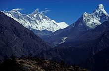 The highest mountain on Earth is Mount Everest in the Himalayas of Asia, whose summit is 8,848 m (29,029 ft) above mean sea level. The highest known mountain on any planet in the Solar System is Olympus Mons on Mars at 21,171 m (69,459 ft).