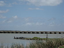 From 1935 to 1940 a series of barrages were built near the Murray Mouth to stop seawater egress into the lower part of the river during low flow periods. They are the Goolwa Barrage(632m), Mundoo Channel Barrage(800m), Boundary Creek Barrage(243m). Ewe Island Barrage(853m) and Tauwitchere Barrage(3.6km).