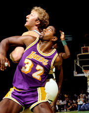 The league added the ABA's innovative three-point field goal beginning in 1979 to open up the game. That same year, rookies Larry Bird and Magic Johnson joined the Boston Celtics and Los Angeles Lakers respectively, initiating a period of significant growth in fan interest in the NBA throughout the country and the world. In 1984 they played against each other for the first time in the NBA Finals. Johnson went on to lead the Lakers to five titles, and Bird went on to lead the Celtics to three. Also in the early '80s, the NBA added one more expansion franchise, the Dallas Mavericks, bringing the total to 23 teams. Later on, Larry Bird won the first three three-point shooting contests.