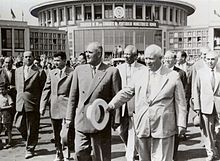 Nikita Sergeyevich Khrushchev (April 15 [ O.S. April 3] 1894 – September 11, 1971) led the Soviet Union during part of the Cold War. He served as First Secretary of the Communist Party of the Soviet Union from 1953 to 1964, and as Chairman of the Council of Ministers, or Premier, from 1958 to 1964. Khrushchev was responsible for the partial de-Stalinization of the Soviet Union, for backing the progress of the early Soviet space program, and for several relatively liberal reforms in areas of domestic policy. Khrushchev's party colleagues removed him from power in 1964, replacing him with Leonid Brezhnev as First Secretary and Alexei Kosygin as Premier.