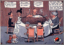 Titus and his staff discovered the "inedible" potatoes were delicious after baking in a slow oven. He contracted to purchase as many potatoes as the farmers could produce that were less than two pounds in weight. Soon after the first delivery of " Netted Gem Bakers", they were offered to diners on the North Coast Limited beginning in early 1909. Word of the line's specialty offering traveled quickly, and before long it was using "the Great Big Baked Potato" as a slogan to promote the railroad's passenger service. Hollywood stars were hired to promote it. When an addition was built for the Northern Pacific's Seattle commissary in 1914, a Railway Age reporter wrote, "A large trade mark, in the shape of a baked potato, 40 ft.long and 18 ft. in diameter, surmounts the roof. The potato is electric lighted and its eyes, through the electric mechanism, are made to wink constantly. A cube of butter thrust into its split top glows intermittently." Premiums such as postcards, letter openers, and spoons were also produced to promote "The Route of the Great Big Baked Potato"; the slogan served the Northern Pacific for about 50 years.
