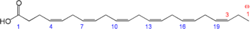 | Eicosatetraenoic acid (ETA) | 20:4 (n−3) | all-cis-8,11,14,17-eicosatetraenoic acid |