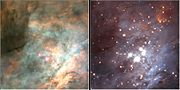 ![]() The entire Orion Nebula in visible light. Credit: NASA/ESA  |