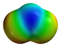 The structure of ozone, according to experimental evidence from microwave spectroscopy, is bent, with C2v symmetry (similar to the water molecule), O – O distance of 127.2 pm and O – O – O angle of 116.78°. The central atom forms an sp² hybridization with one lone pair. Ozone is a polar molecule with a dipole moment of 0.5337 D. The bonding is single bond on one side and double bond on the other side, and these bonds are blended to become known as resonance structures. The bond order is 1.5 for each side.