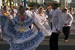 The Christmas parade, known as El desfile de Navidad, is celebrated in the capital, Panama City. This holiday is celebrated on December 25. The floats in the parade are decorated with the Panamanian colors, and the women dress in dresses called Pollera while the men dress in the traditional Montuno. In addition, the marching band in the parade, consisting of drummers, keeps the crowds entertained. In the city, a big Christmas tree is lit with Christmas lights, and everybody surrounds the tree and sings Christmas carols.