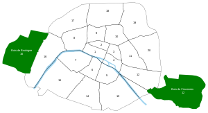 Each of Paris' twenty arrondissements has a directly elected council (conseil d'arrondissement), which, in turn, elects an arrondissement mayor. A selection of members from each arrondissement council form the Council of Paris (conseil de Paris), which, in turn, elects the mayor of Paris.
