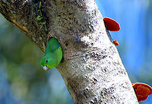 The lories and lorikeets, hanging parrots and Swift Parrot are primarily nectar and pollen consumers, and have tongues with brush tips to collect this source of food, as well as some specialised gut adaptations to accommodate this diet. Many other species also consume nectar as well when it becomes available.