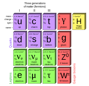 The very current state of the classification of all elementary particles is explained by the Standard Model. It describes the strong, weak, and electromagnetic fundamental interactions, using mediating gauge bosons. The species of gauge bosons are the gluons, W−, W+ and Z bosons, and the photons. The Standard Model also contains 24 fundamental particles, (12 particles and their associated anti-particles), which are the constituents of all matter. Finally, the Standard Model also predicts the existence of a type of boson known as the Higgs boson.
